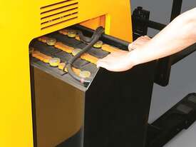 The LCD monitor with 3.2 inch graphic smart display allows the operator to easily and efficiently control the machine. The monitor provides information about speed & accelerator level, steer angle & travel direction, battery discharge indicator, hour meter & working mode.